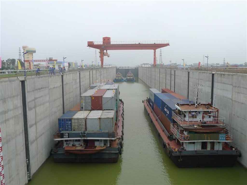2011年6月12日桂平二線船閘工程試通航成功。西江第一個3000噸級的船閘,也是我國內(nèi)河最大的船閘之一,為目前世界最大單級船閘。