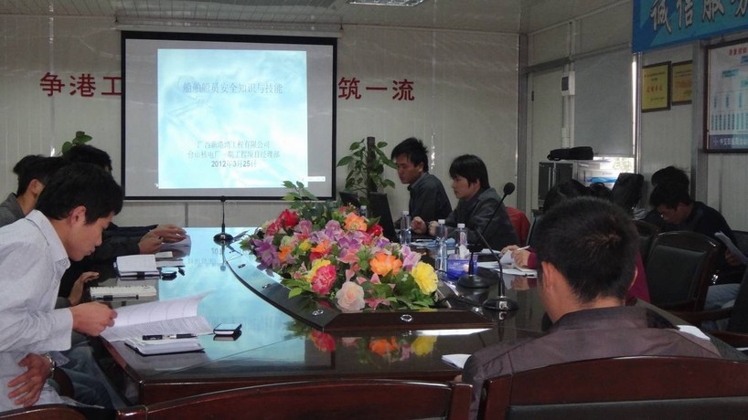 2012年3月25日,在項目經(jīng)理的推動及項目部全體人員通力配合下,項目部利用大風惡劣天氣無法施工的間隙,開展了船舶船員安全知識及技能暨“5S目視化管理”的專題培訓。主要的培訓內(nèi)容有:1、船舶個人安全及社會責任;2、船舶防火與滅火;