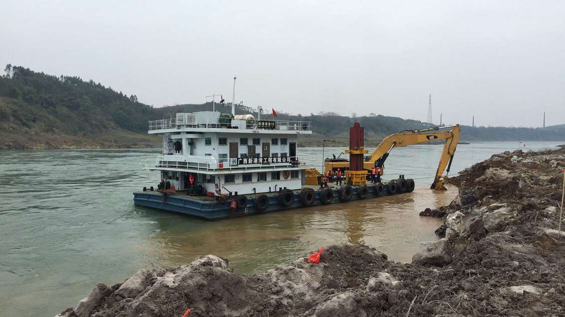 “爆竹聲中一歲除,春風(fēng)送暖入屠蘇。”春節(jié)本是一家團(tuán)聚、濟(jì)濟(jì)一堂的日子。然而在2016年春節(jié)期間,我司來賓柳州(鹿寨)至南寧高速公路改擴(kuò)建工程紅水河特大橋橋區(qū)航道整治及助航標(biāo)志工程№HD1標(biāo)項(xiàng)目(以下簡稱柳南項(xiàng)目)施工建設(shè)的第一線。新港灣33號(hào)船組,新港灣浚13船組,新港灣浚11船組,陸上爆破組及項(xiàng)目經(jīng)理部全體同仁在項(xiàng)目經(jīng)理廖少銳的率領(lǐng)下,將無怨無悔地堅(jiān)守在各自的崗位上,用勤勞的雙手和堅(jiān)韌的品質(zhì)躬身踐行著公司“優(yōu)質(zhì)安全,高效服務(wù)”的宗旨。力爭達(dá)成2016年4月10日完成交工的工期目標(biāo)!